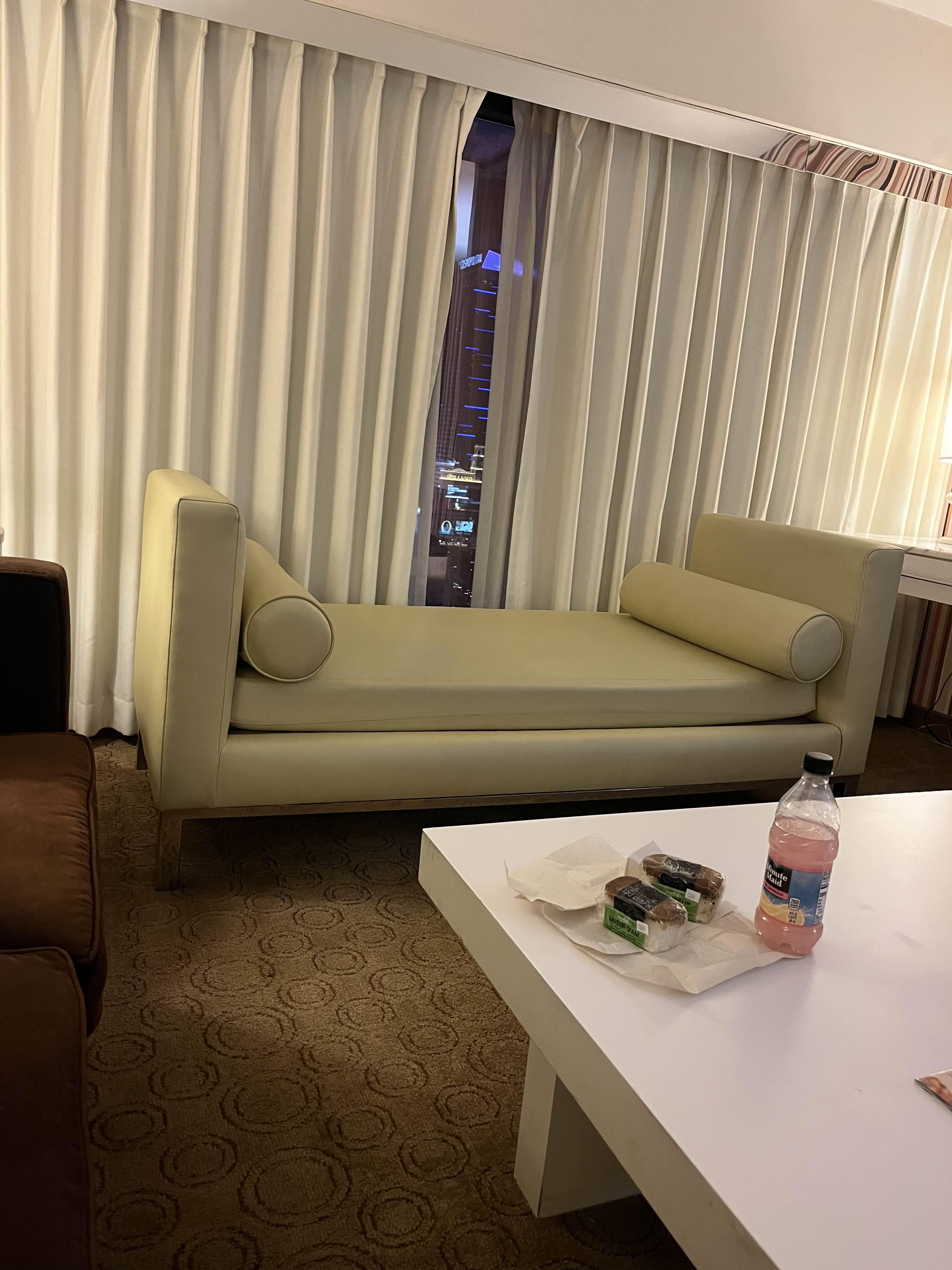 하이롤러뷰 고룸 예약 했는데 (1박 3만원, 리조트피 별도) 풀 배정된듯? 이게 오버북킹 인가.. 암튼 책임지고 재워는 줌. 스위트로 업글 (거실도 딸린 나폴리탄 스위트로 추정) 근데 욕실 천장, 벽타고 물이 샜는지 벽에 걸린 수건들이 다 젖어있었음 .. 😭새벽에 피곤 + 빡침 = 이호텔 다신 안와!!