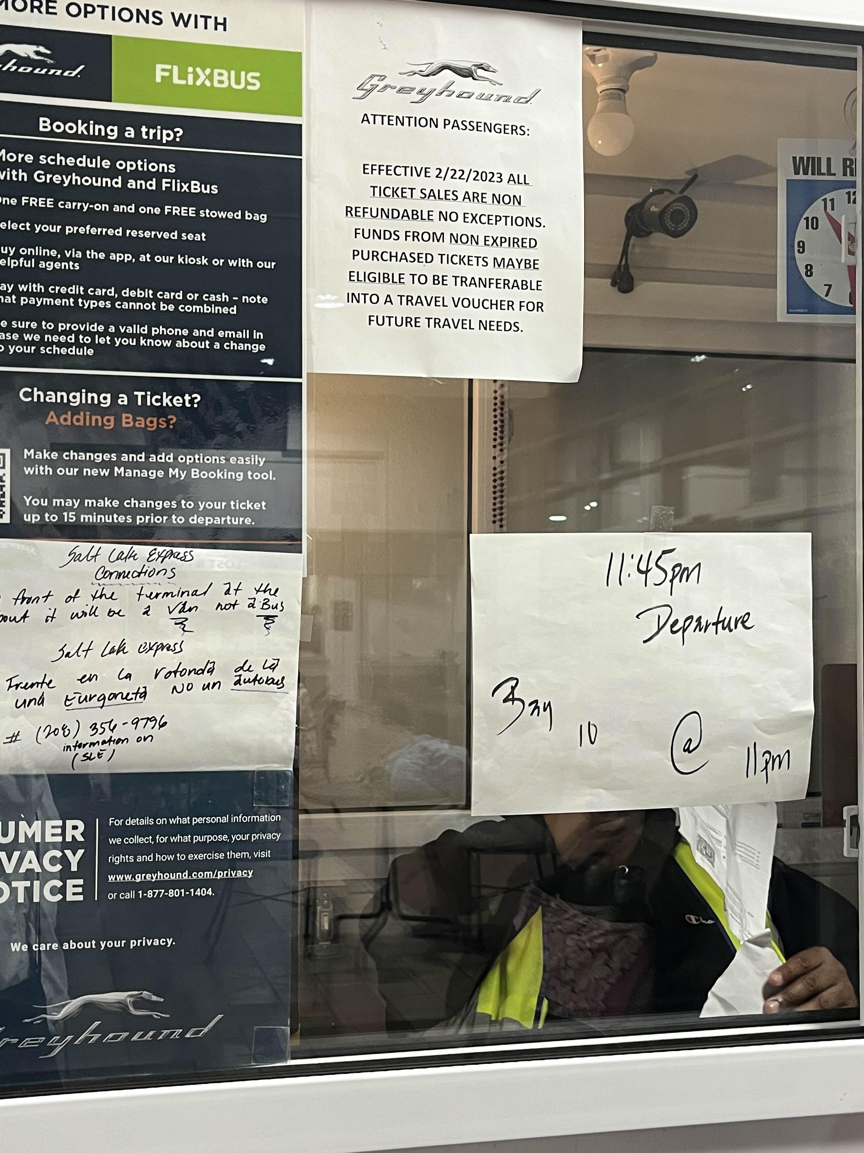 23시 쯤 터미널 도착해서 보니, 정류장 건물이 있었음 (간이 터미널인줄 알고 갔는데 꽤 큼) 그런데 출발/ 도착/ 플랫폼 안내 같은 전광판은 없고, 안내부스 (?) 벽에 A4 종이에다가 적어붙혀놨음.. 대충살자 미국인들처럼^~^